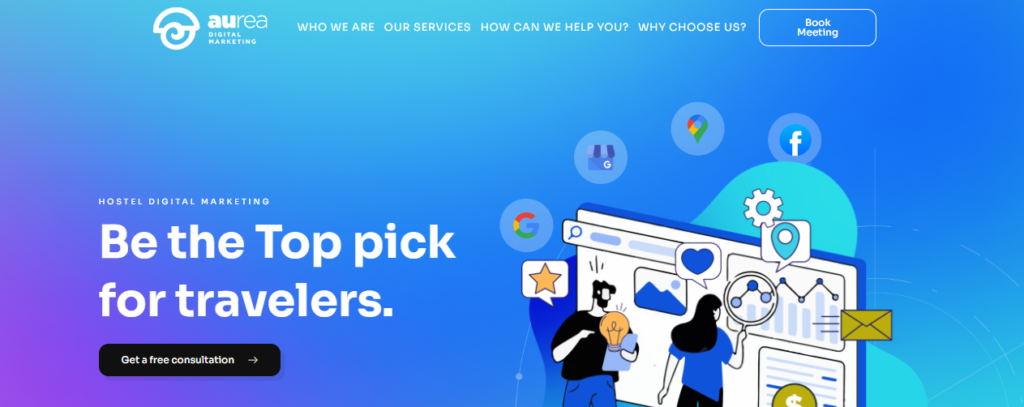 Enfoque en resultados: Resaltamos cómo Aurea transforma la presencia digital de los hostels para atraer más clientes y aumentar su visibilidad online.