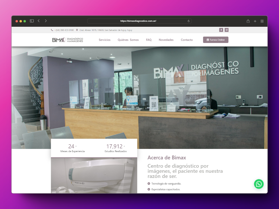 La web de Bimax Diagnóstico por Imágenes se convirtió en una herramienta clave para la atención al paciente, mejorando la eficiencia en la gestión de turnos y la comunicación de los servicios. Esto reforzó su posición como un centro confiable y accesible en el ámbito del diagnóstico por imágenes.