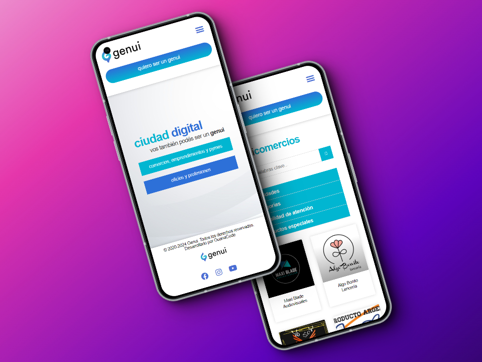 La web de Genui | Ciudad Digital se consolidó como una herramienta esencial para promover la conexión entre la comunidad y los actores económicos locales. Su diseño funcional y enfoque inclusivo fomentan el desarrollo económico y fortalecen el sentido de comunidad en la ciudad.