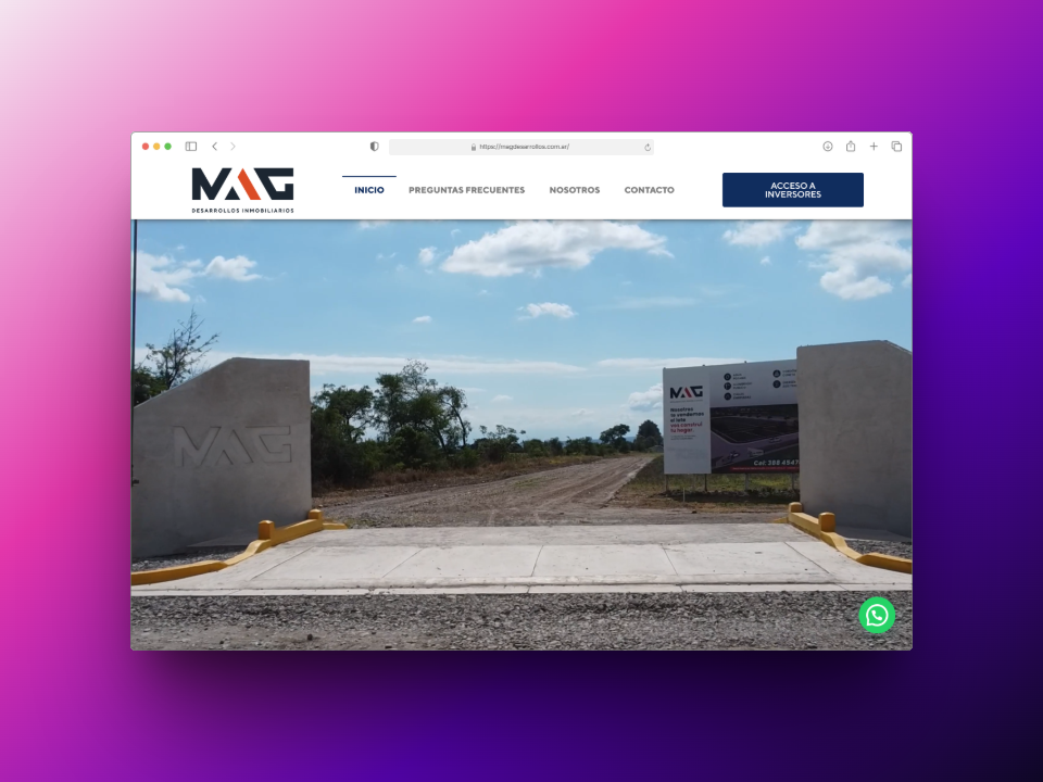 Desarrollamos una web institucional moderna, clara y funcional que comunica la propuesta de valor de MAG Desarrollos Inmobiliarios y brinda herramientas digitales útiles para sus clientes: