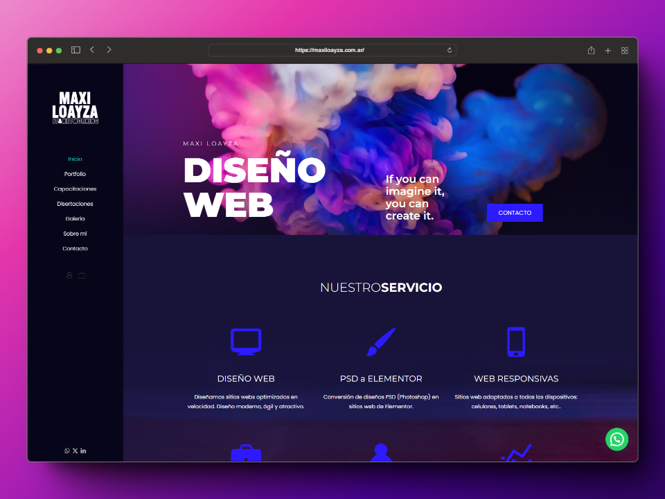 La web de Maxi Loayza se posicionó como una herramienta clave para promocionar sus servicios en tecnología e informática. Su diseño moderno y profesional facilita la conexión con clientes potenciales, destacando su experiencia y posicionándolo como referente en su área.