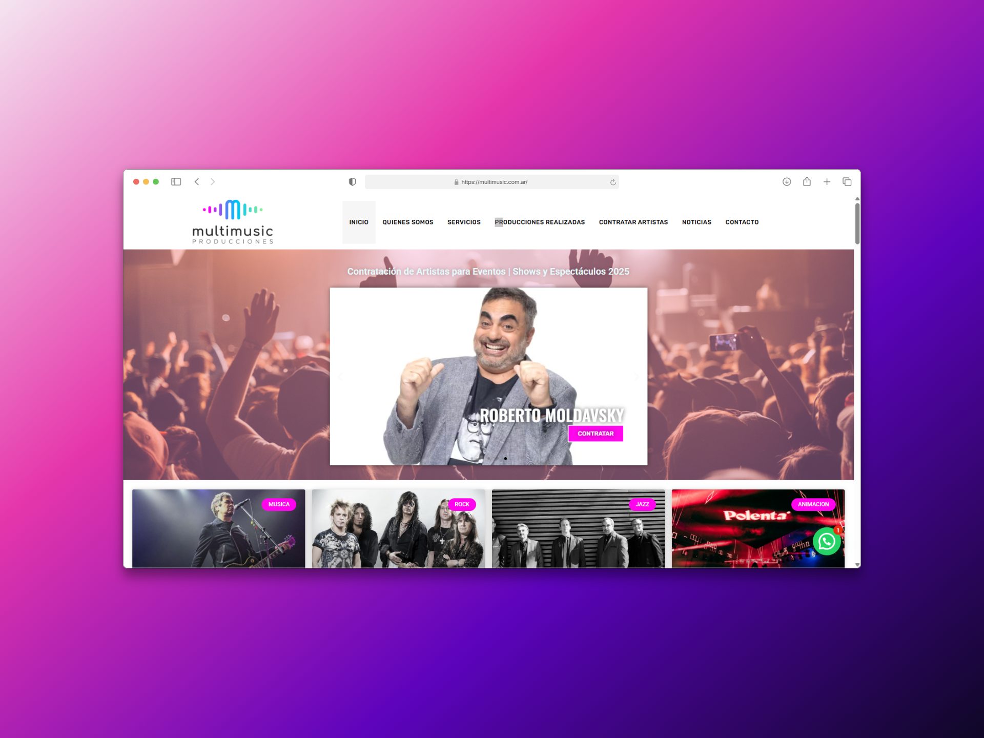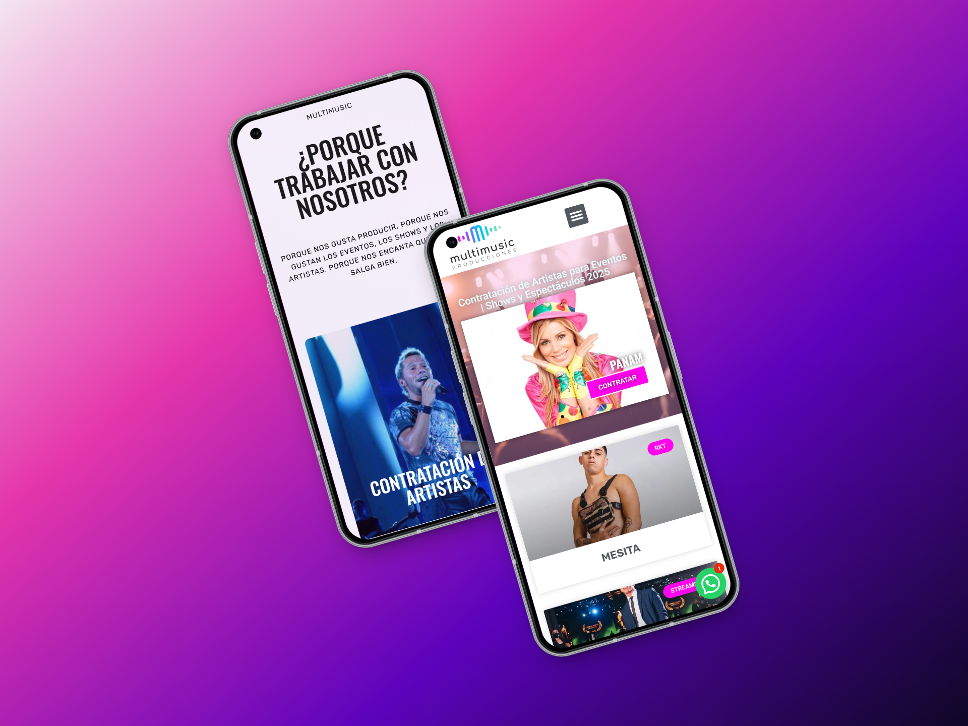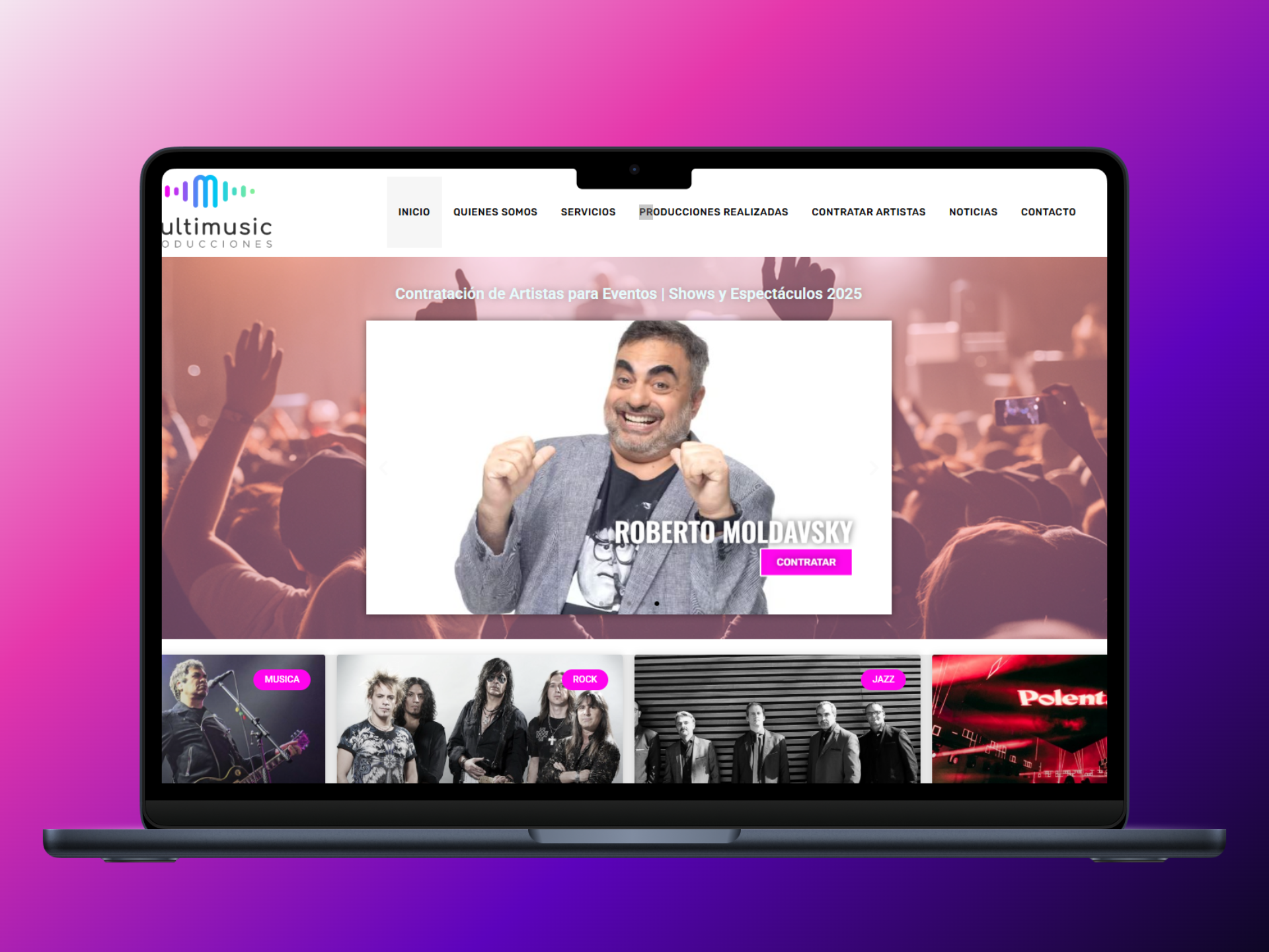 La web de MultiMusic se consolidó como una herramienta clave para captar clientes, reflejando su liderazgo en producción técnica y contratación de artistas. Su diseño atractivo y funcional refuerza la confianza de los clientes, posicionando a MultiMusic como un referente en el sector.