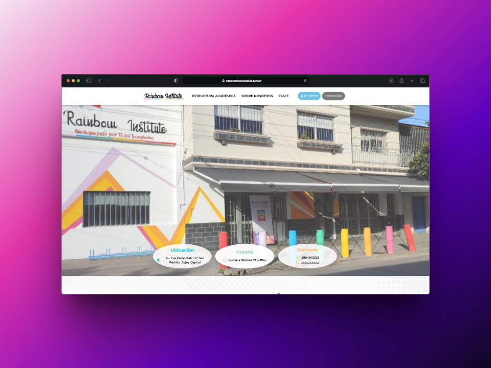 El nuevo sistema web de Rainbow Institute permitió digitalizar la gestión académica, mejorar la comunicación con las familias y consolidar la presencia institucional del instituto. Hoy, docentes y tutores cuentan con una herramienta intuitiva y eficiente para acompañar de cerca el proceso educativo de los estudiantes.