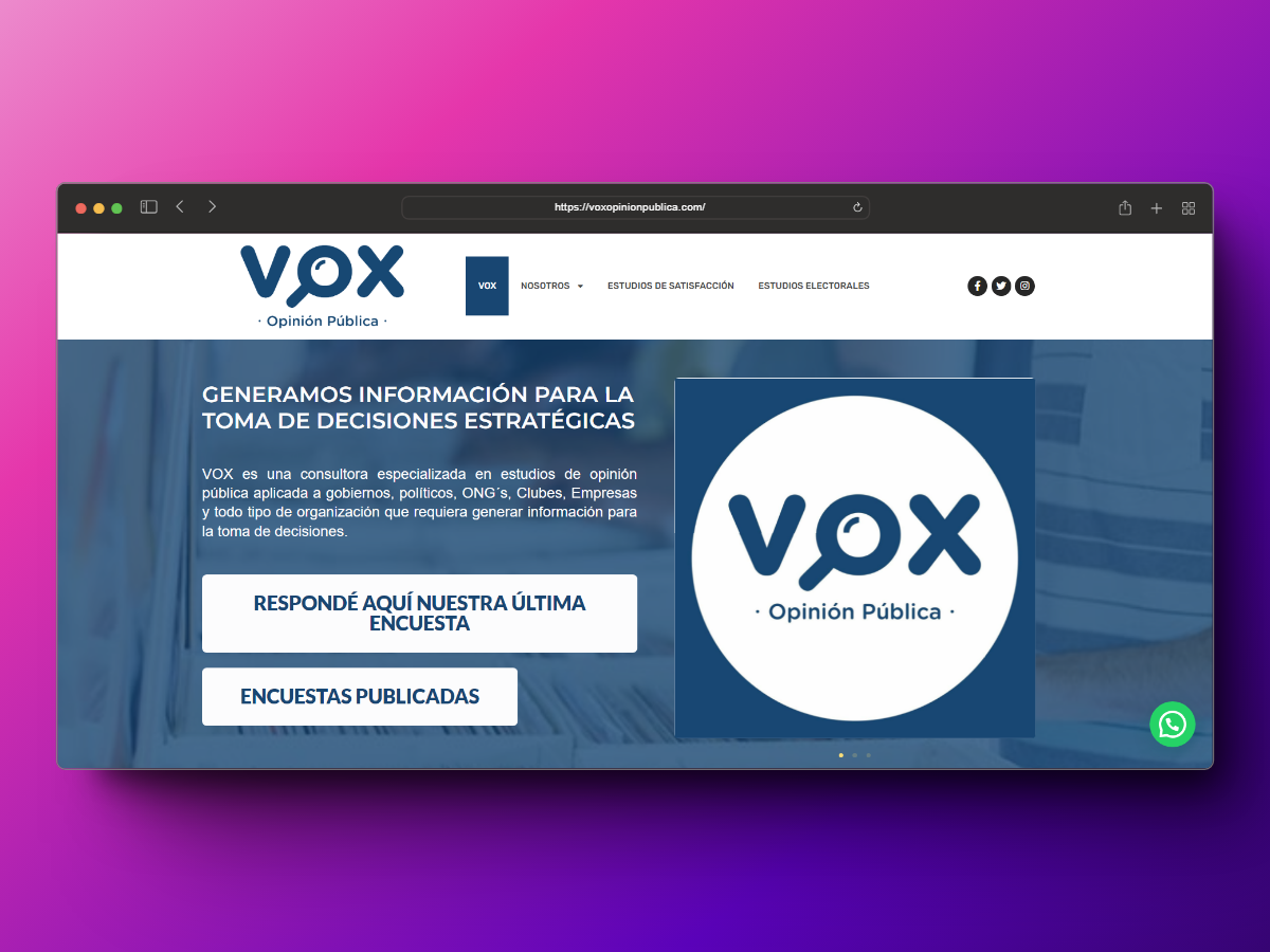 Desarrollamos una web institucional moderna y funcional que refleja la experiencia y profesionalismo de VOX Opinión Pública: