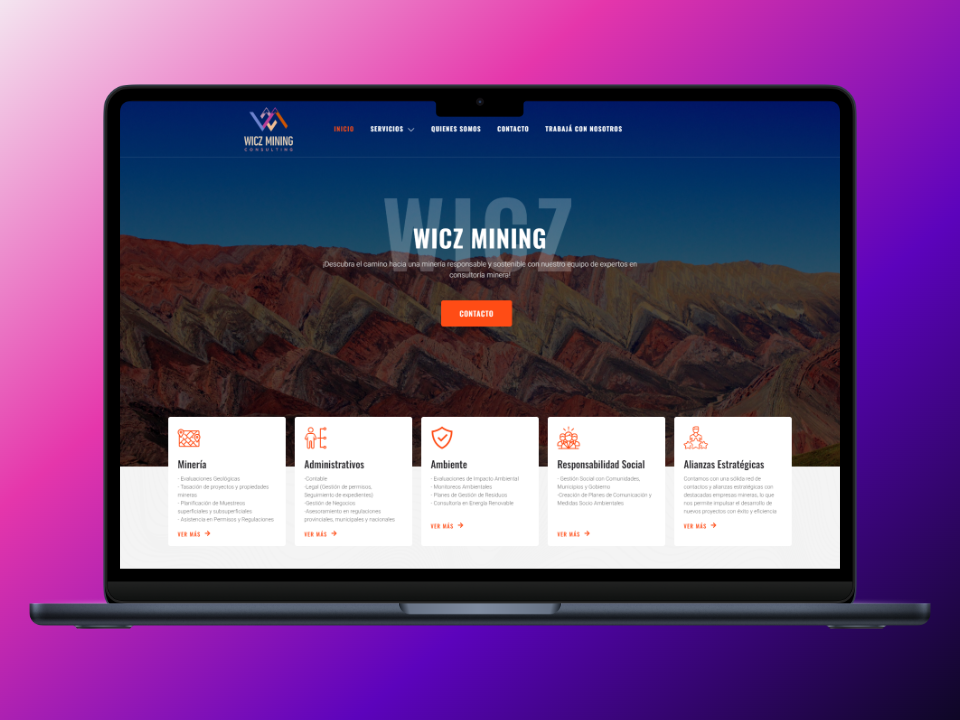 Desarrollamos una web institucional moderna y funcional que refleja la experiencia de Wicz Mining Consulting: